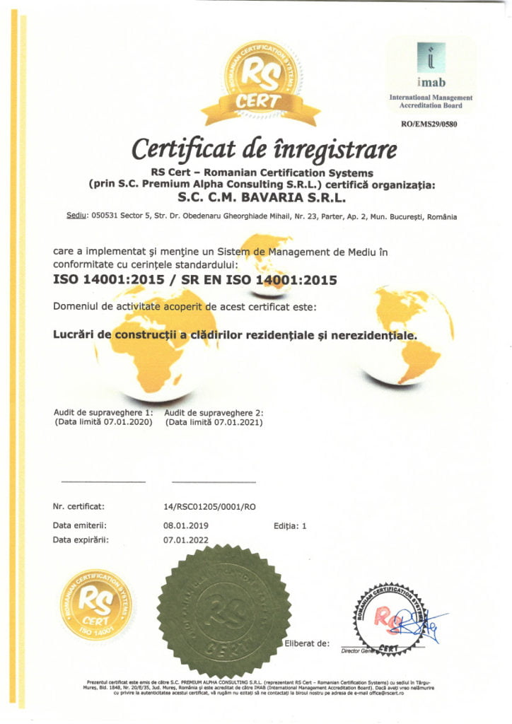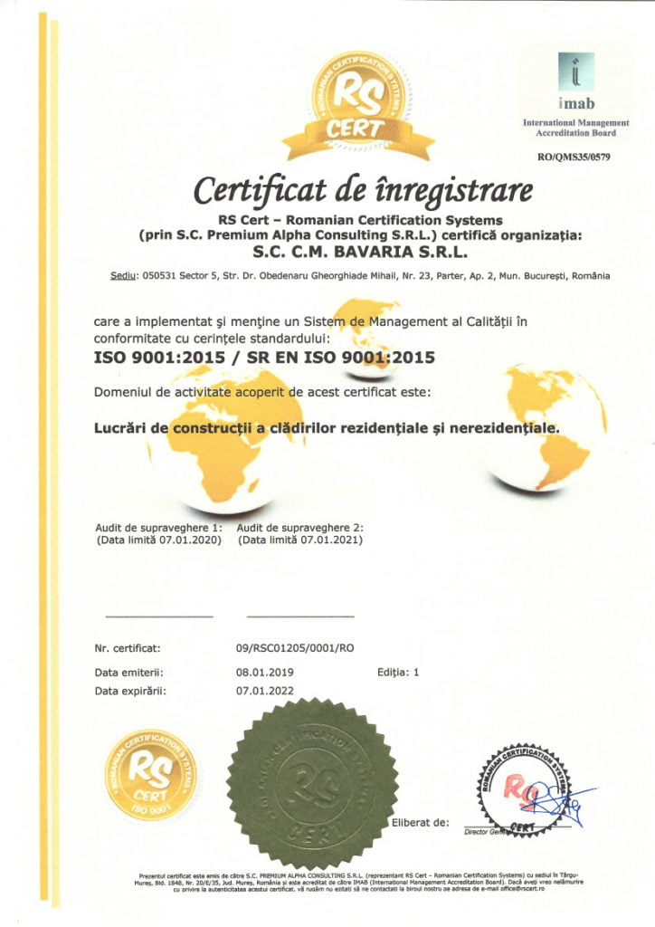 Societatea este in curs de certificare pentru sistemul integrat al managementului.