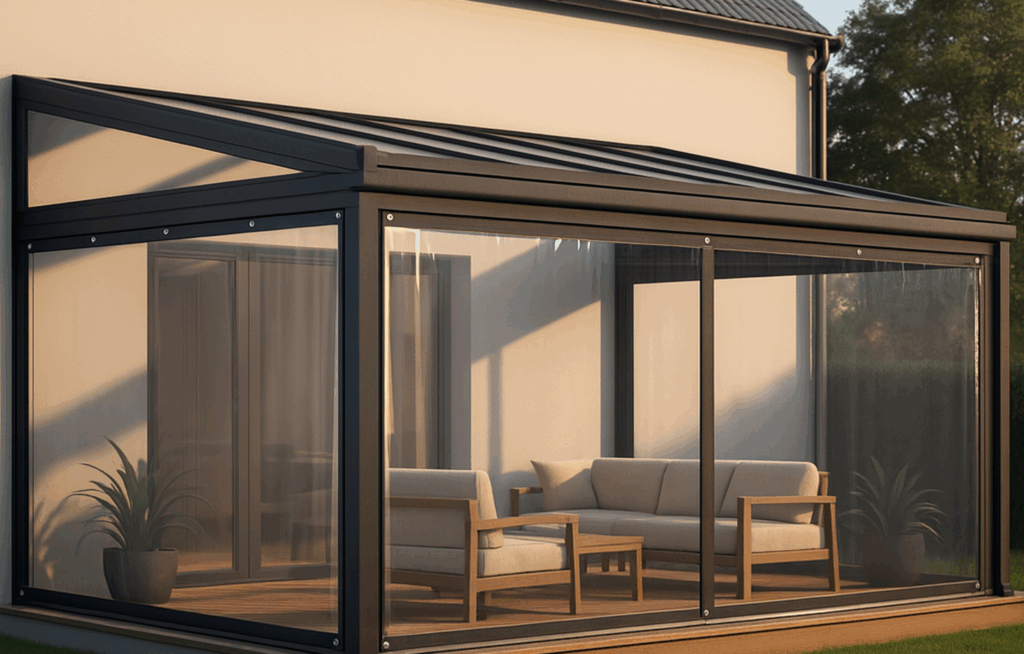 Pe timpul verii, folia oferă protecție împotriva razelor UV și reduce căldura excesivă, menținând un climat plăcut în interiorul terasei. În același timp, acționează ca o barieră împotriva vântului, a ploii și a altor intemperii, ceea ce face ca acest tip de închidere să fie ideal pentru utilizare pe tot parcursul anului. Folia transparentă oferă control asupra mediului, indiferent de condițiile meteorologice